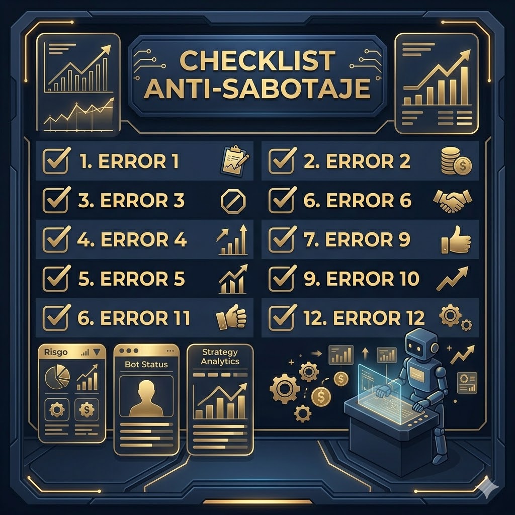 Los 12 errores que cometen el 80% de los principiantes en sus primeras dos semanas y cómo evitarlos. Lista para revisar antes de activar el robot en real.