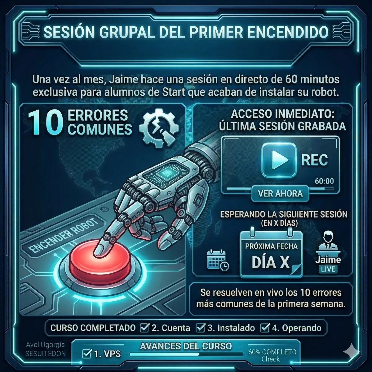 ⚠️ Robotea Start es un programa formativo. No constituye asesoramiento financiero ni una oferta de inversión. Invertir en mercados financieros conlleva riesgos significativos, incluyendo la pérdida parcial o total del capital. Los resultados en cuentas demo no garantizan resultados en cuentas reales. Los rendimientos pasados no garantizan resultados futuros.